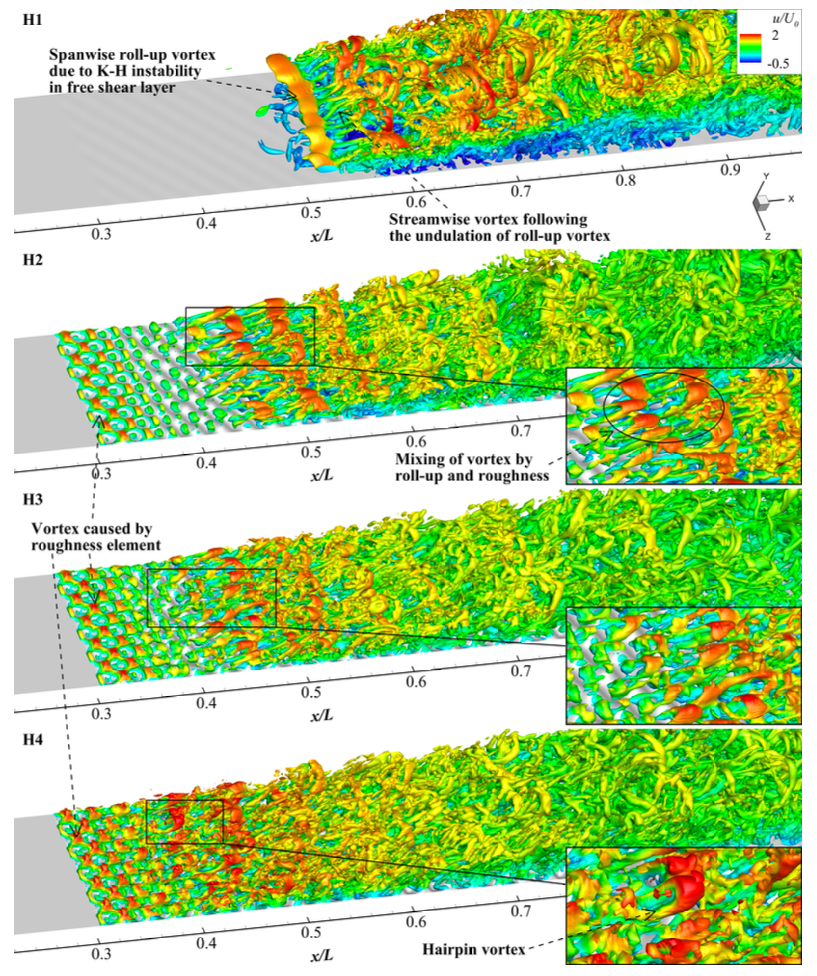1.转捩与湍流:团队长期从事脱体涡模型的统计理论推导、数值验证相关研究。该研究旨在克服传统壁面解析的大涡模拟在实际高雷诺数流动中存在计算资源需要太大的缺陷,通过建立雷诺时均与大涡模拟的混合模型来实现工程可接受的非定常湍流数值模拟方法。该方向合作单位有美国爱荷华州立大学(湍流模式理论权威学者Paul Durbin)和中科院力学研究所。