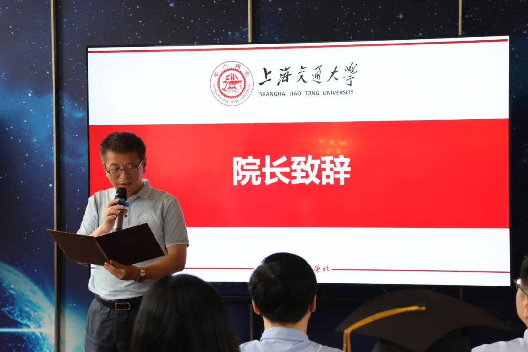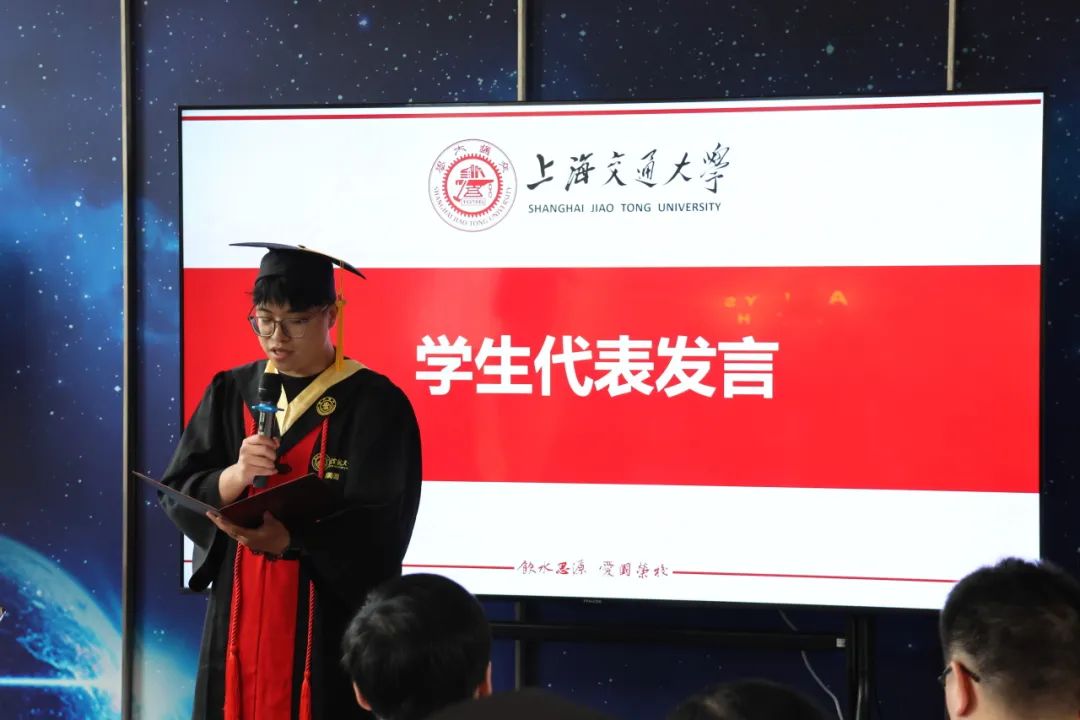 郝圆圆作为优秀毕业生代表发言。他回顾了在空天的四年时光,结合自己在学业、科创、学生工作中的收获和成长做了分享,希望同学们永不停止前进的脚步,在时代洪流中乘风破浪、一往无前!