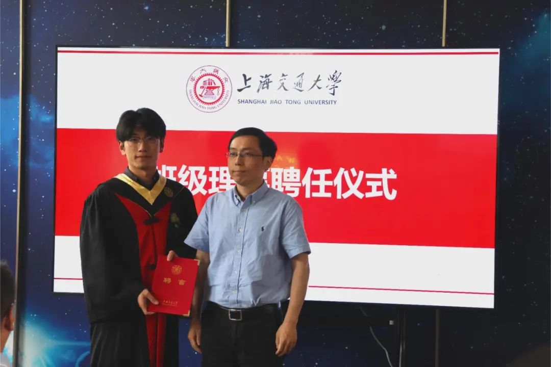 班级理事作为毕业后联系大家的重要纽带,将在毕业后继续连接彼此。周翔为班级理事颁发聘书。