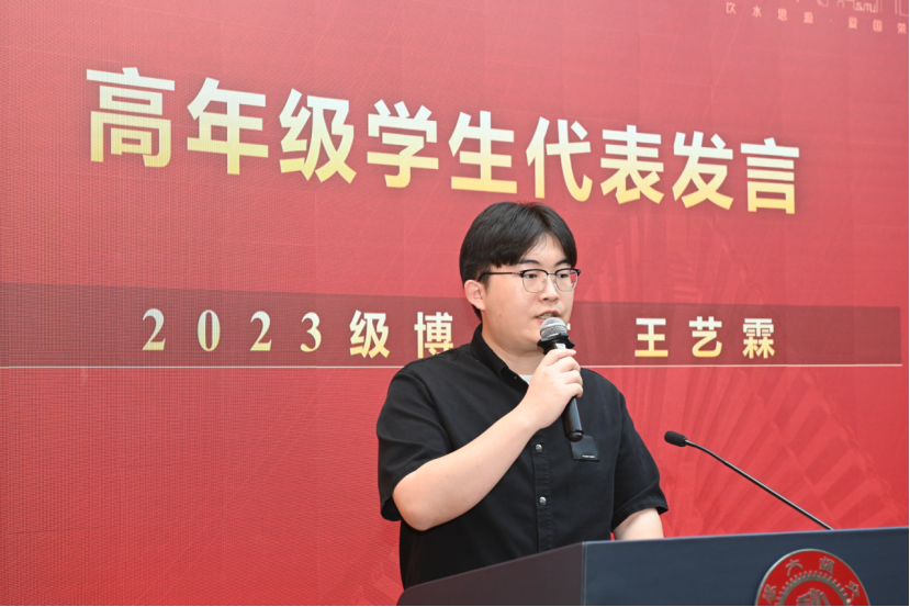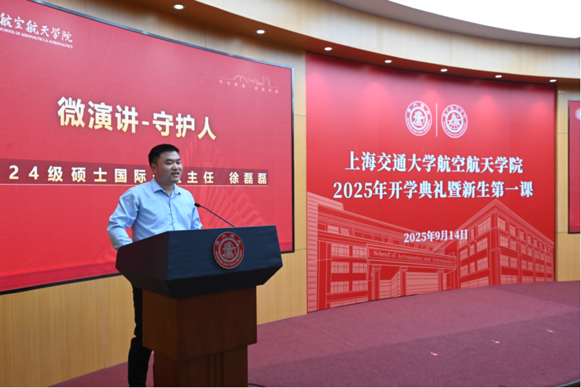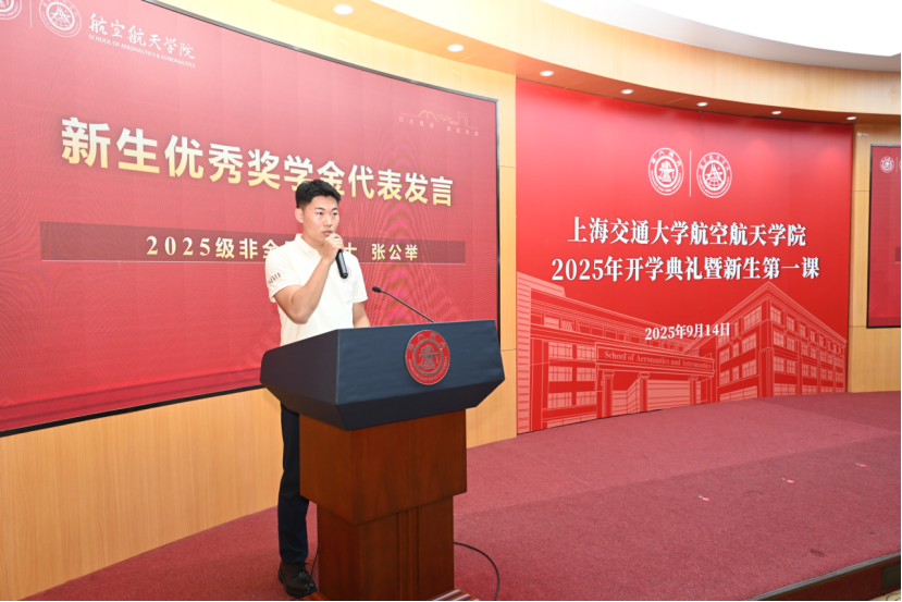 “选择航空航天,就意味着把个人理想与国家战略紧密相连”,王艺霖作为2023级博士老生发言。他结合自己在科研、竞赛、实践中的亲身经历,和新生们分享了自己的体会和感悟。他祝福新生们能够“心怀理想、脚踏实地,在空天学院谱写属于自己的精彩篇章”。