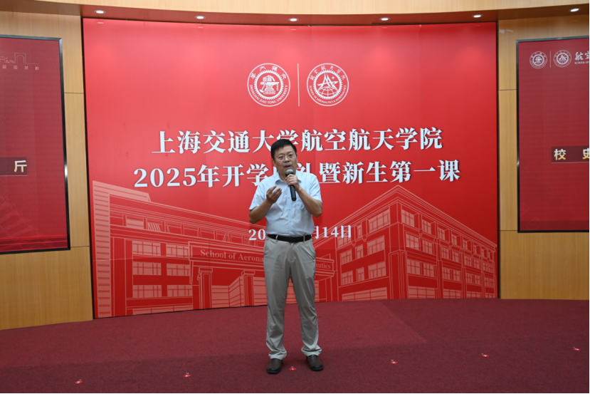 刘付成代表学院向新生的到来表示诚挚的欢迎和热烈的祝贺。他以中国人民抗日战争暨世界反法西斯战争胜利80周年阅兵式为切入点,勉励新生:不断“求知”,以点滴积累夯实空天根基;不断“求是”,以务实态度锚定技术本质;不断“求新”,以敢闯精神突破学科边界;不断“求变”,以主动姿态融入时代变局。