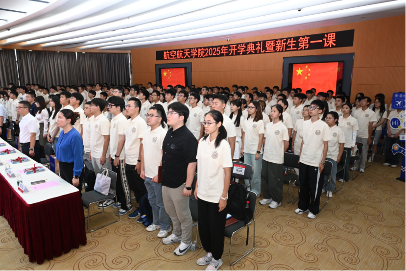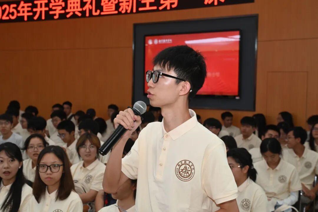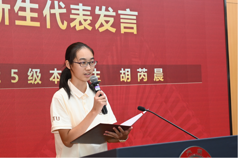 胡芮晨代表2025级本科新生发言。她分享了自己与航空航天专业结缘的故事。并号召同学们和她一起,“带着这份对专业的坚守与热爱,投身航天强国建设,让青春在星辰大海的征途上写下属于这代空天人的精彩篇章”。