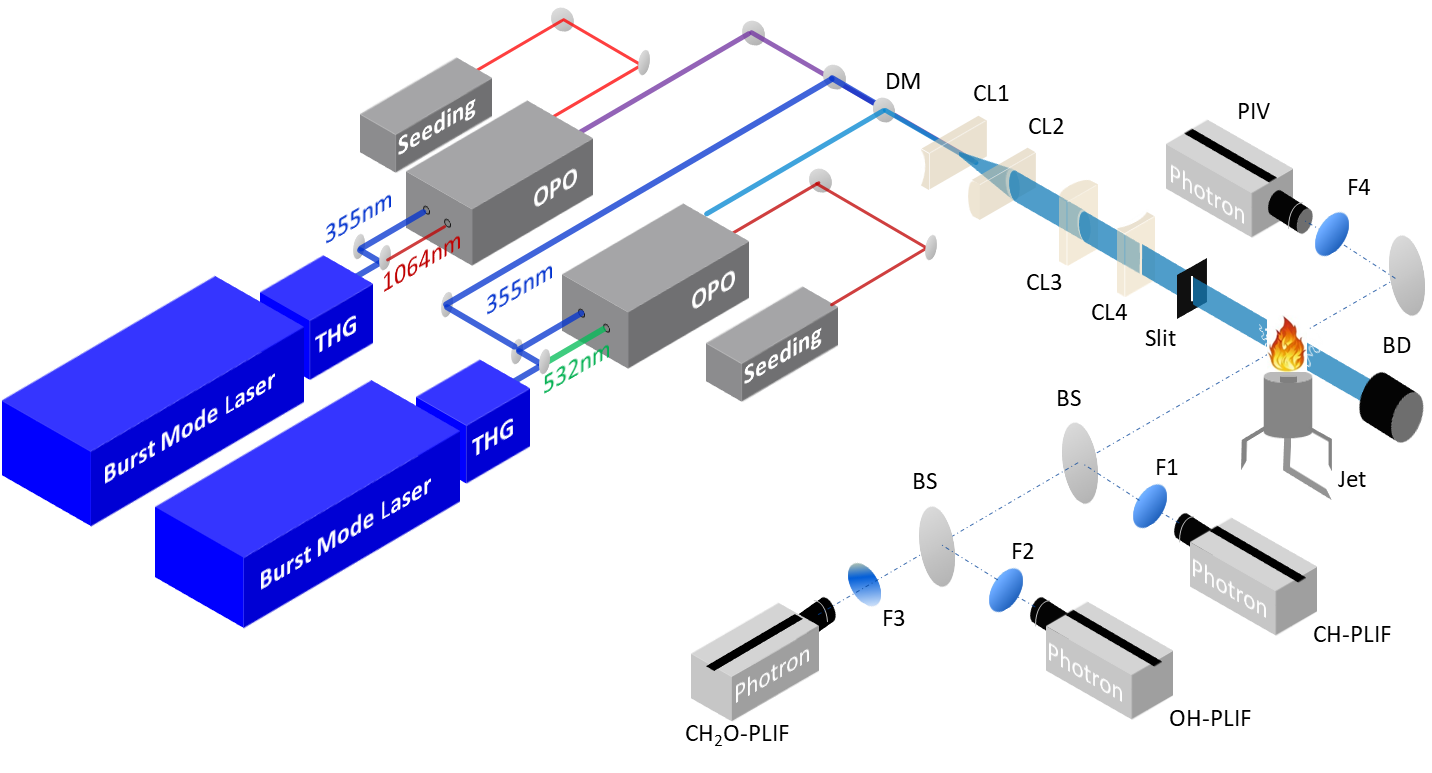- 燃烧室的激光精细成像和光谱技术、火焰失稳、低排放燃烧室;